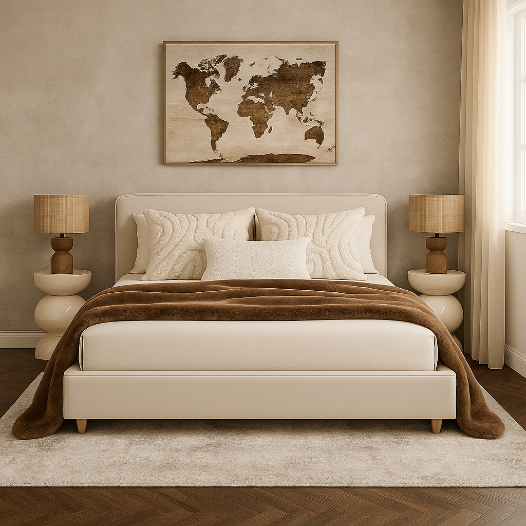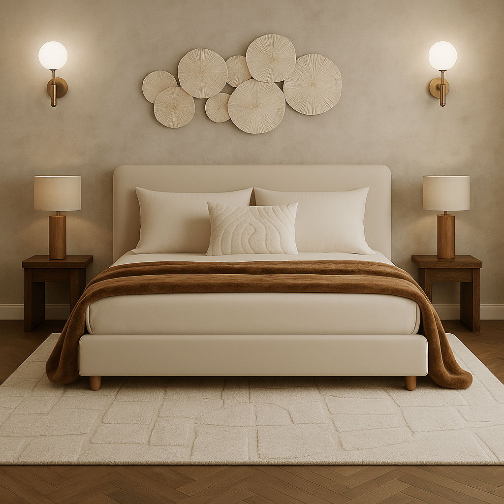 Placez-le partiellement sous le lit ou au centre de la pièce pour créer une sensation de douceur et de chaleur dès le réveil.